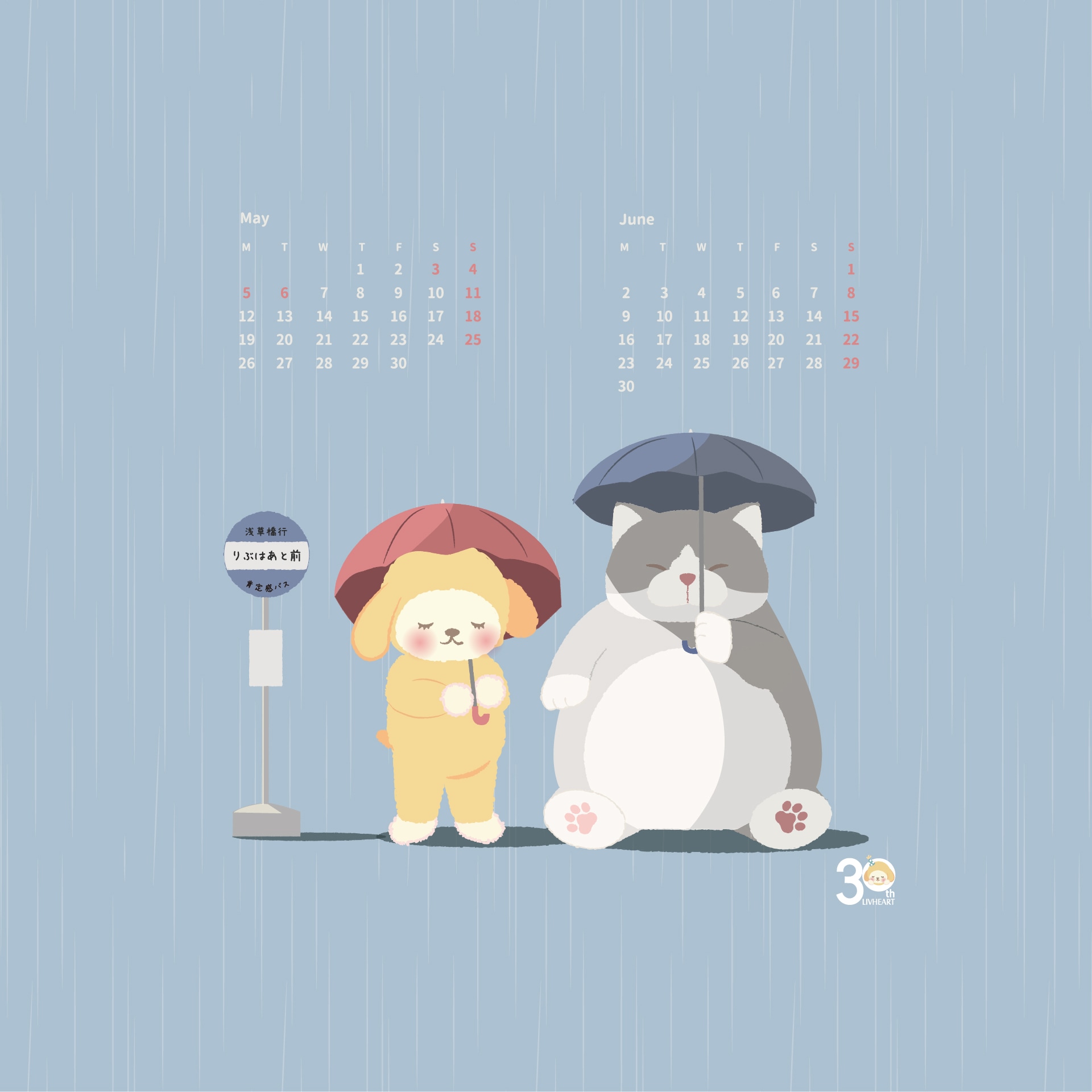 2025年5月6月カレンダー外を歩けば色鮮やかな花々や緑色が綺麗な樹木をよく見るようになりました!